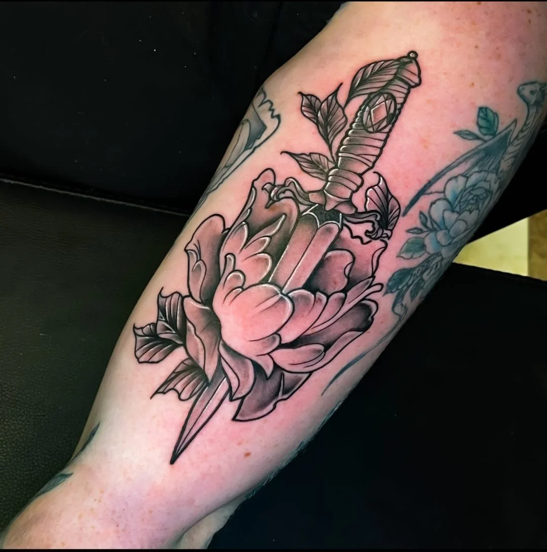 Hi, I’m Kam Harrington, a tattoo artist passionate about creating bold artwork with clean linework, smooth shading, and solid color. My style is heavily inspired by American Traditional and neo-traditional influences, bringing classic tattoo aesthetics to life with precision and care.